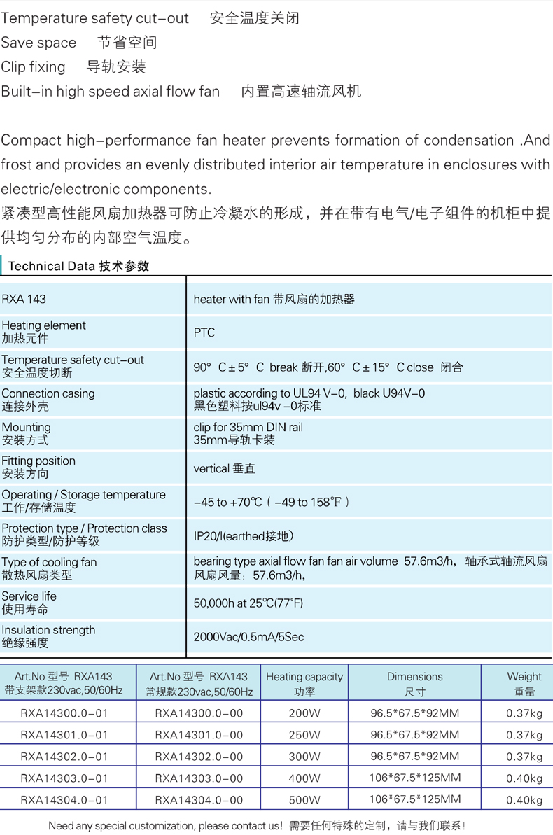 加熱器用于機箱內,防止產(chǎn)生水珠或者溫度低于工作溫度值,避免生銹腐蝕。